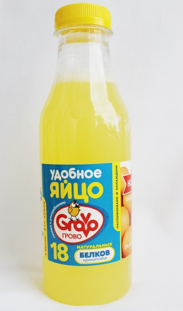 Только для покупки в розничном магазине или курьером по городу. По почте не отправляем ;-) 500 мл = 18 яичных белков Продукт, созданный на основе куриных яиц – чемпионов по соотношению качества и усвояемости белков. Повысит эффективность потребления белка Усвояемость более 96%. Сделать ваше питание безопасным для здоровья Пастеризованный яичный белок не содержит холестерина. Получить профессиональное качество Имеем все необходимые сертификаты и лицензии. Увеличить скорость и качество наращивания мышечной массы Обеспечивает мышцы строительным материалом в течение 4-5 часов после употребления. Сократить объем потребляемой пищи Вам больше не придется есть через силу, чтобы получить нужное количество протеинов. Оптимизировать расходы на спортивное питание Жидкий яичный белок доступнее, чем большинство марок спортивного питания и дешевле, чем покупка того же объема белка в обычных продуктах. Продукция GROVO и SGTDrill абсолютно идентична и выпускается на одном заводе.