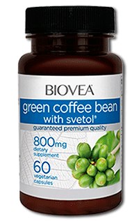 Green Coffee Bean with Svetol от BIOVEA содержит два вида экстрактов сырого необжаренного кофе с большим содержанием хлорогеновой кислоты (45%), кофеиновой кислоты и других натуральных активных компонентов. Клинически доказано, что эти ингредиенты помогают поддерживать в пределах нормы кровяное давление и уровень сахара в крови, а также способствуют сжиганию лишнего жира.
