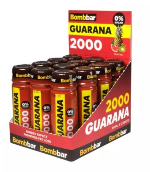 Bombbar Guarana 2000 - энергетический напиток для поддержания высокого тонуса и работоспособности. Добавка состоит из экстракта плодов и семян куста с лианоподобными ветвями под названием Guarana, растущего в Бразилии вдоль побережья реки Амазонка и культивируемого в Перу. Действие гуараны основано на высоком содержании кофеина и витаминов B, C и E, а также ксантиновых алкалоидов (кардиостимулятора теофиллина и теобромина). Bombbar Guarana 2000 оказывает на организм спортсмена мощный когнитивный эффект, усиливающий качественное развитие тела, поддерживающий нормальное функционирование памяти и обеспечивающий бодрость и хорошее настроение. Бодибилдерам продукт позволяет более точно и интенсивнее выполнять анаэробные упражнения с повышенной концентрацией и фокусировкой, что значительно улучшает качество и производительность тренировок. Добавка полностью натуральная и изготовлена только из природных ингредиентов. Побочные эффекты гуарана не имеет. Обладает выраженным жиросжигающим эффектом. Спортсменам с повышенной возбудимостью необходимо учитывать большое содержание кофеина, которое может привести к бессоннице.