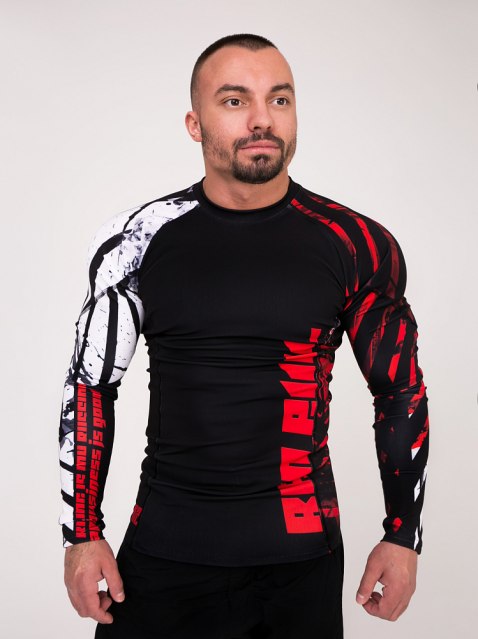 Практичный пацанский рашгард. Плотно облегает твое могучее тело, а значит, не мешает при выполнении упражнений, привлекает фитоняшек и дает окружающим тебя дрищам понять кто тут главный.