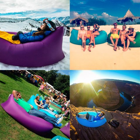Ламзак — это очень удобный диванчик, который можно носить с собой. Главное удобство — чтобы надуть ламзак, вам не нужны усилия и насосы. Вы просто зачерпываете воздух в мешок, а затем закрываете клапан и сворачиваете горловину дивана. На чудесном диване можно валяться на пляже, чтобы не покупать общественных шезлонгов или на своем дачном участке. Его можно взять в поход и любое путешествие. Лежать на нем будет мягко, а вечером не холодно. Некоторые люди на ламзаке даже плавают. Ламзак придумал голландский дизайнер Marijn Oomen и впервые показал его на голландском шоу «Лучшая идея Голландии» в 2010 году. Lamzak — в переводе с голландского означает «ленивый человек». Вес надувного диванчика меньше килограмма. Его легко можно убрать в сумку или рюкзак. Производители обещают 12 часов в надутом состоянии.