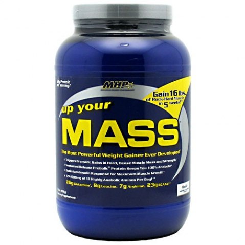 MHP Up Your Mass - это высокобелковый гейнер на долгих углеводах, обогащенный витаминами. Комплексная белковая основа обеспечит вас всеми необходимыми для роста аминокислотами в течение долгого времени (в каждой порции содержится 23 гр ВСАА и 26 гр глютамина!). Углеводная смесь из ячменя и овса долго будет питать ваши мышцы и даст им энергию для роста. Прекрасный комплекс ненасыщенных жирных кислот защитит ваше сердце и ускорит метаболизм жиров. Также стоит добавить, что Up Your Mass содержит всего 2 гр быстрых углеводов на порцию и практически не содержит насыщенных жиров! Можно долго распинаться о преимуществах Up Your Mass перед другими гейнерами, но поверьте, если вы хотите набрать чистую мышечную массу, то это идеальный вариант.