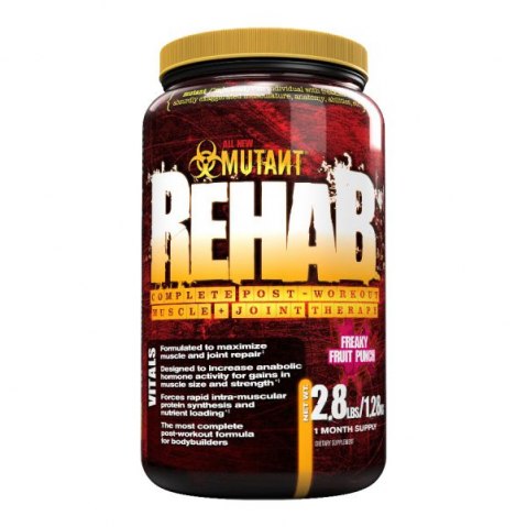 Mutant Rehab - это послетренировочный комплекс, который затрагивает все аспекты послетренировочного восстановления. 1. Комплекс аминокислот с большим содержанием ВСАА. 2. Смесь нескольких видов креатина для увеличения выносливости и придания мышцам объема. 3. Формула для восстановления суставов и связок. 4. Комплекс электролитов для восстановления водно-соляного баланса 5. Фосфатидилсерин обогащенного соевого лецитина для снижения секреции кортизола. 6. Комплекс углеводов для пополнения запасов гликогена.